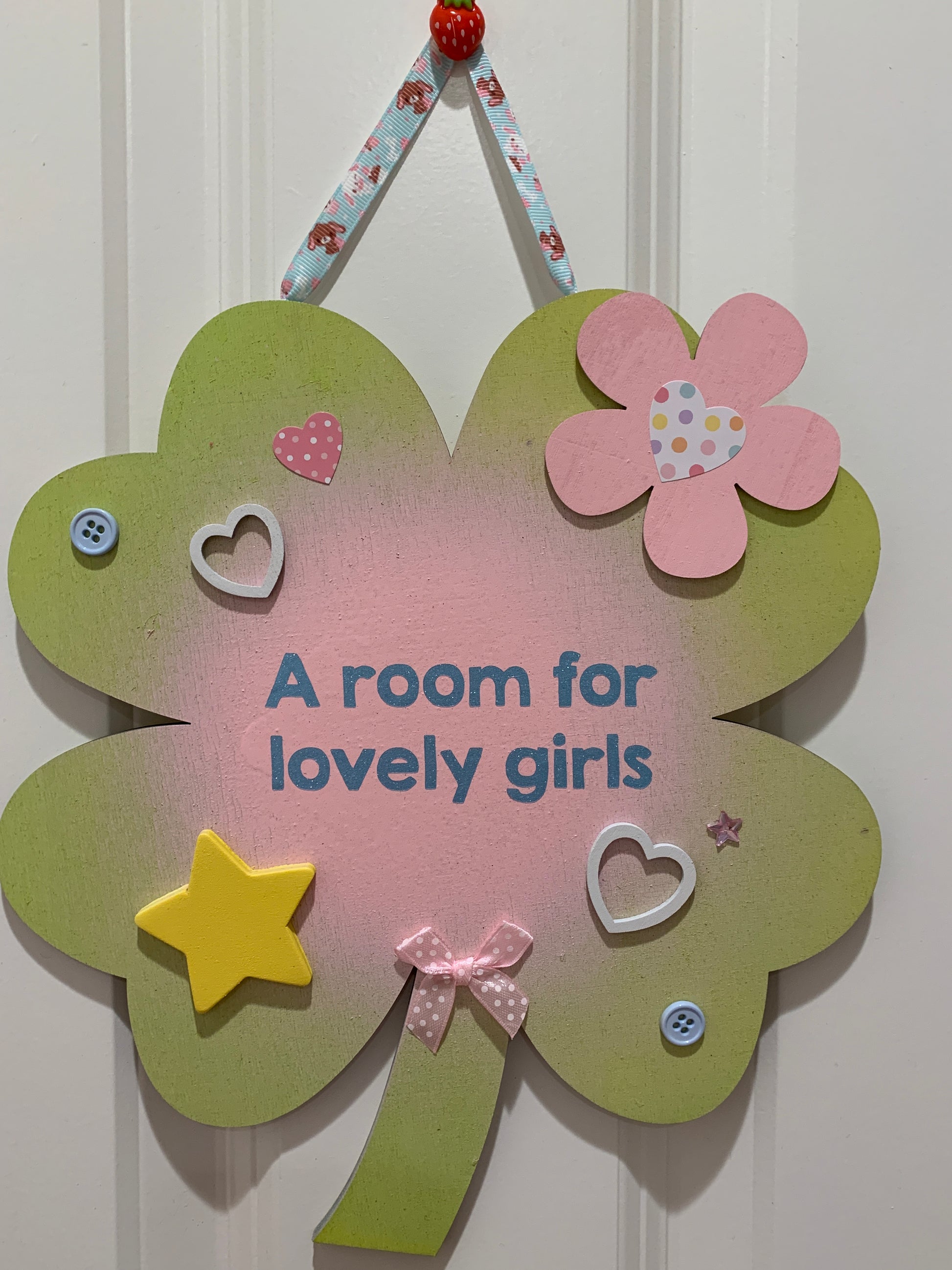 A wooden room sign that reads, "a room for lovely girls"!
