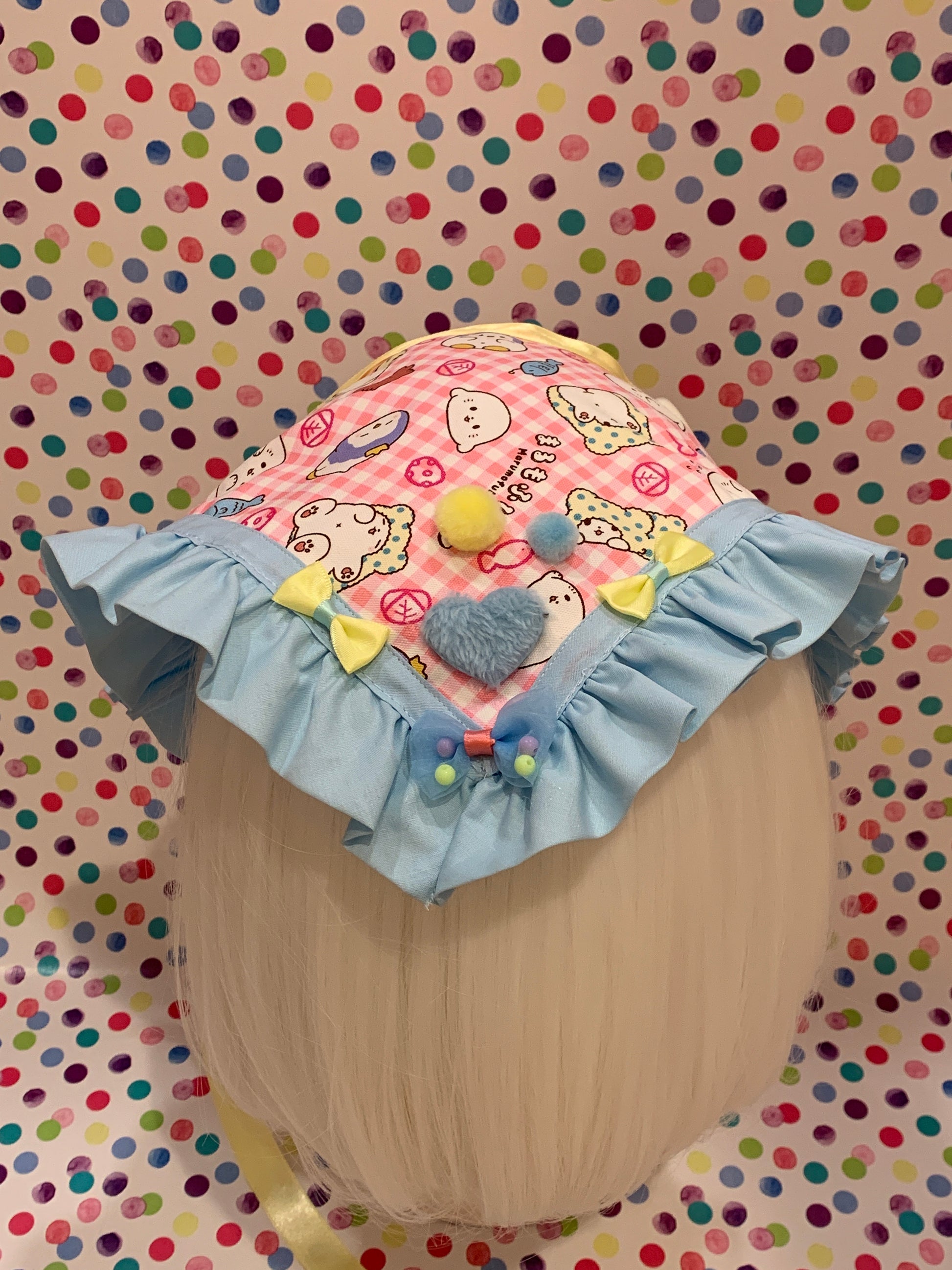 handmade bandana made from official Marumofubiyori fabric!~ Features a blue ruffle trim that will make you look as sweet as a piece of candy ^o^