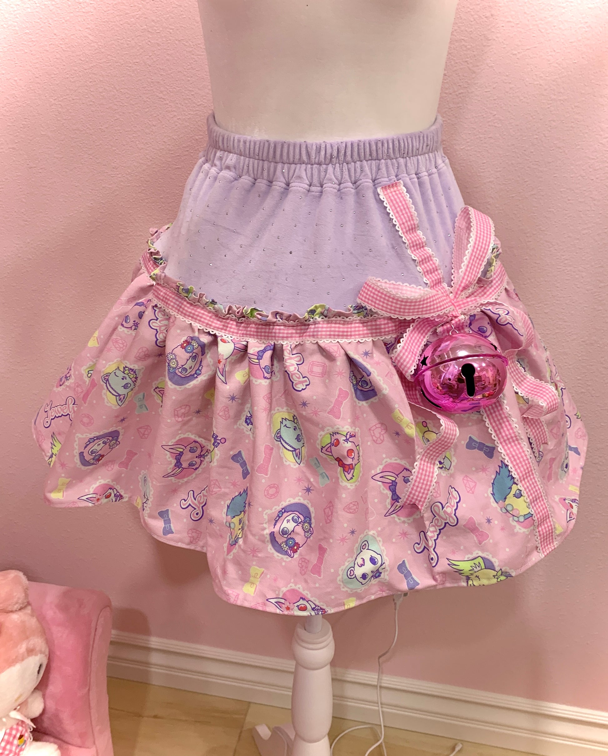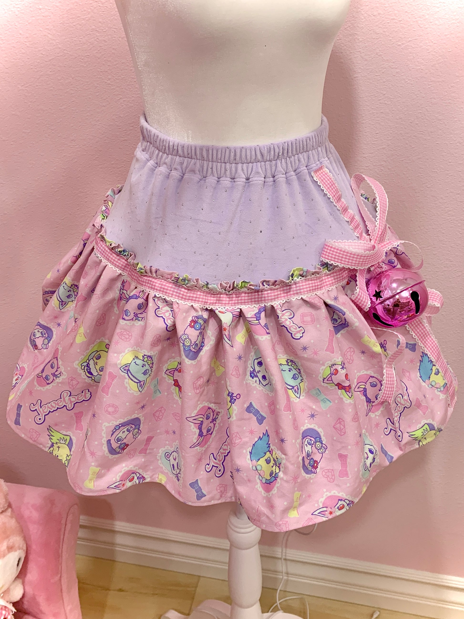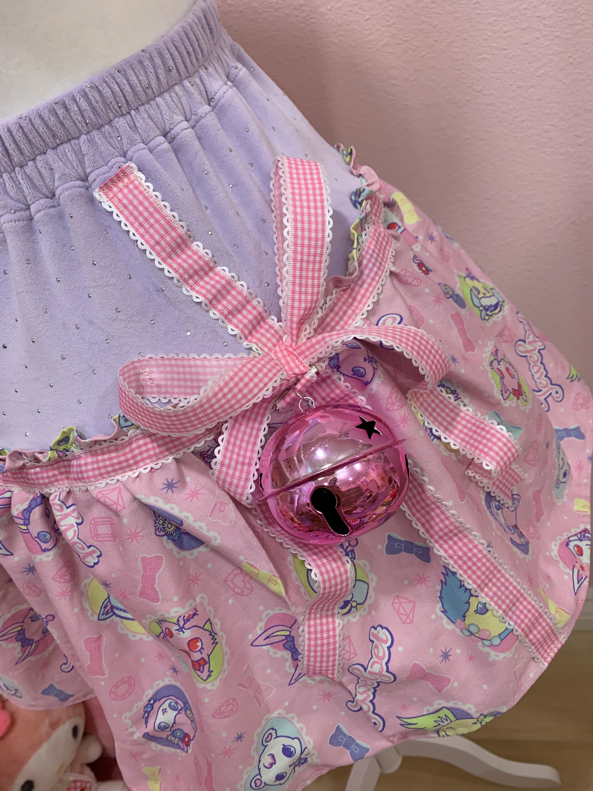 Made with Jewelpet fabric and Juicy Couture velour fabric! Features a big pink bell (detachable) and a cute ribbon (not detachable). Roughly size US L,