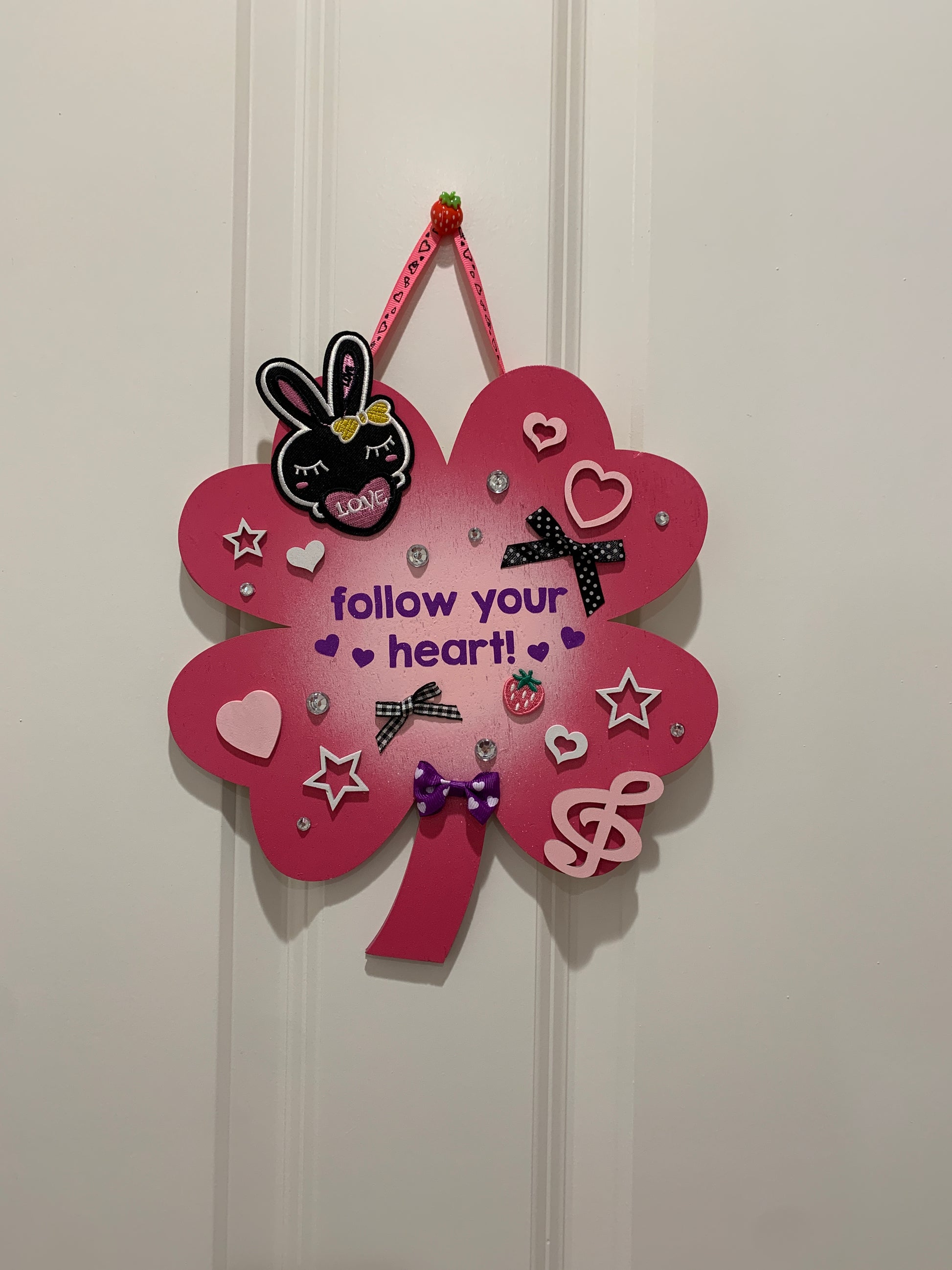 Follow Your Heart! Hot pink clover room sign