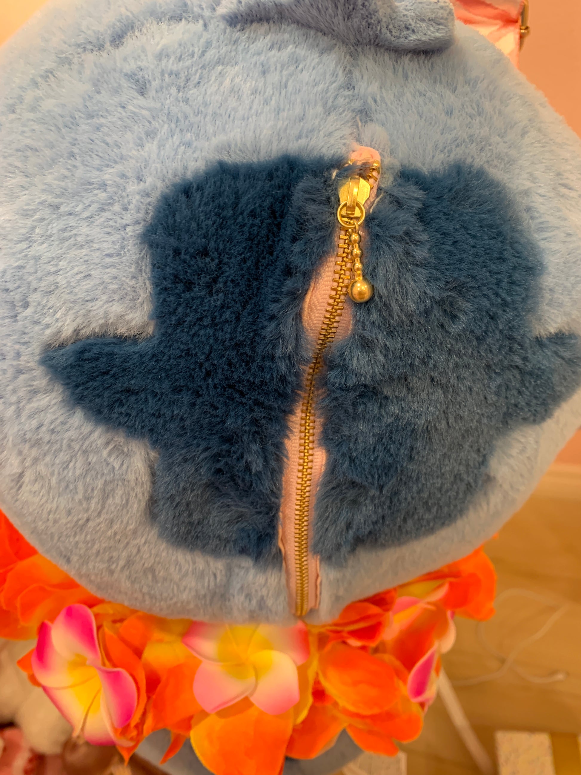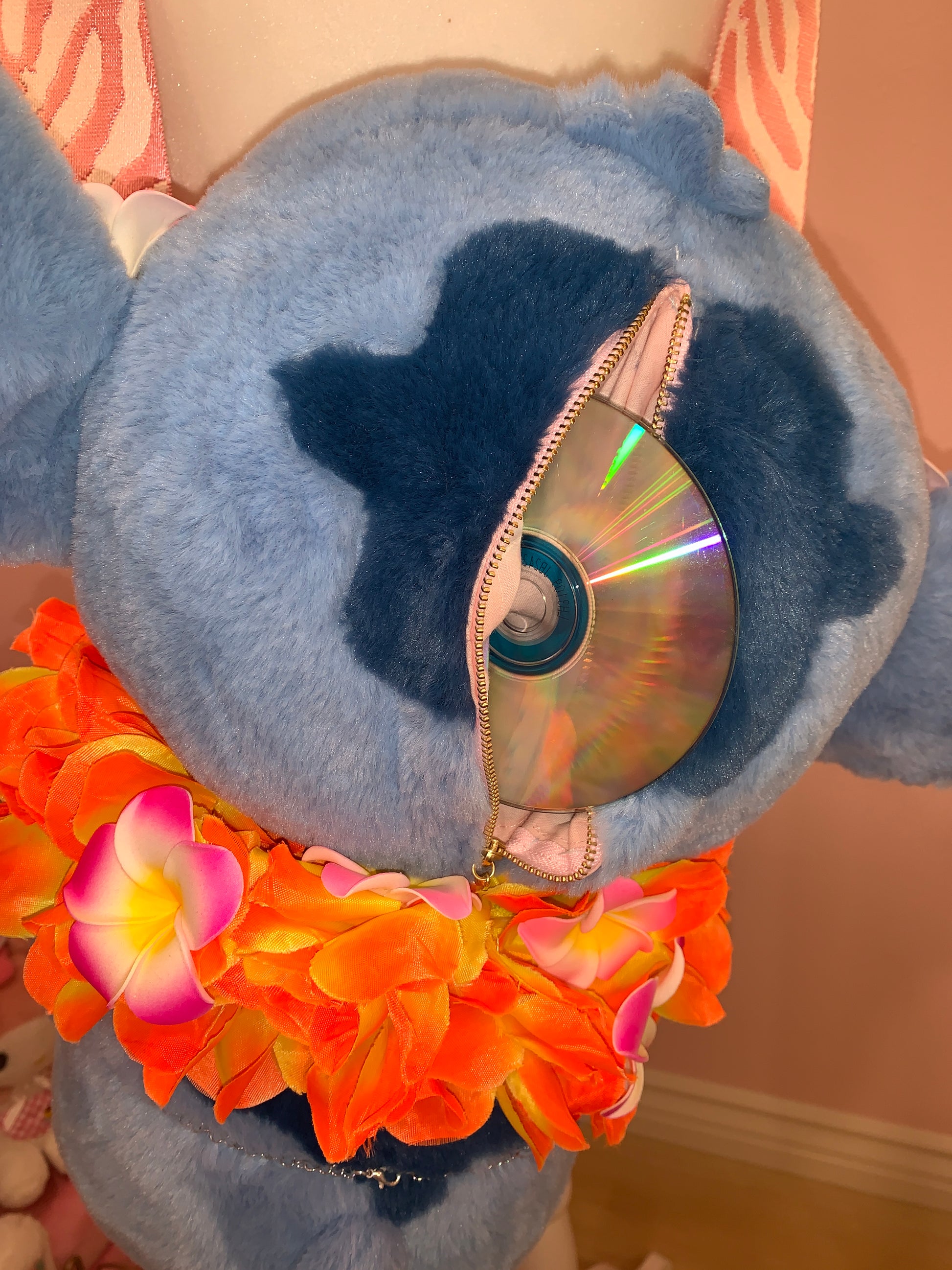 Jumbo gal themed Stitch plush bag! Has a zipper compartment in the back of his head… can fit a phone! And probably a small wallet!