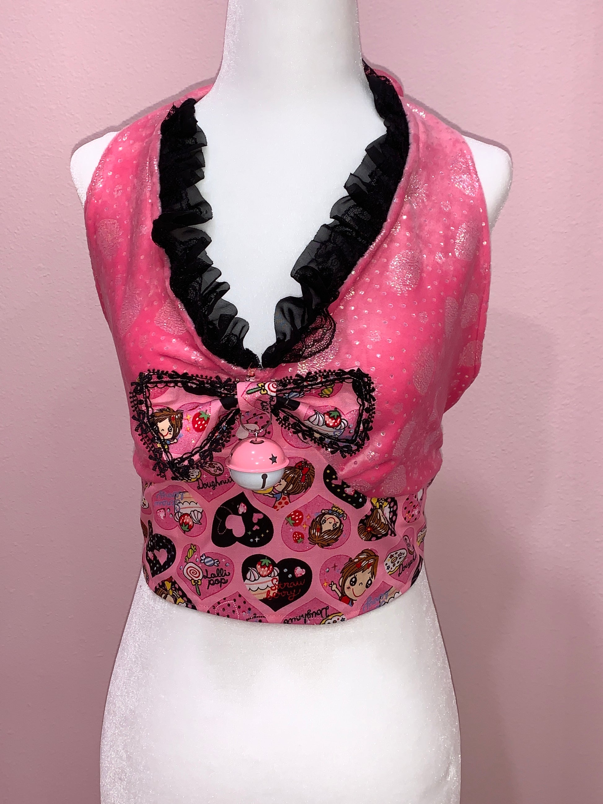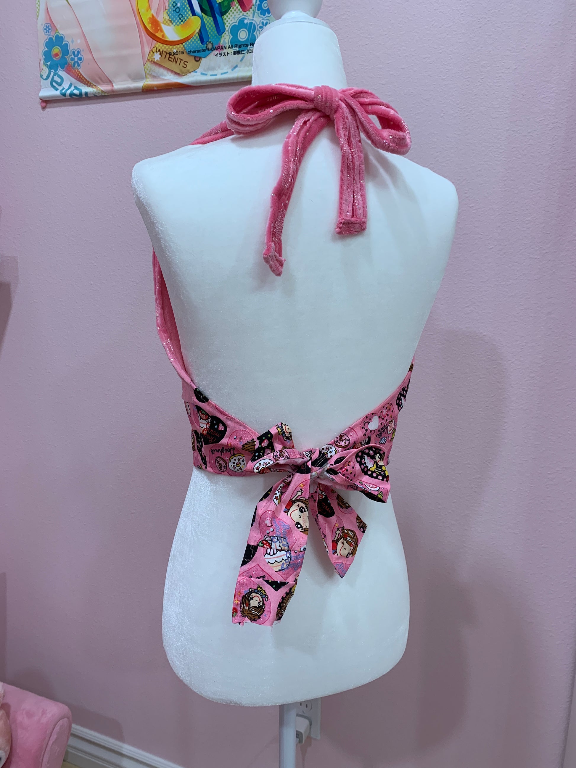 A halter top made of soft material and printed glittery fabric imported from Japan~