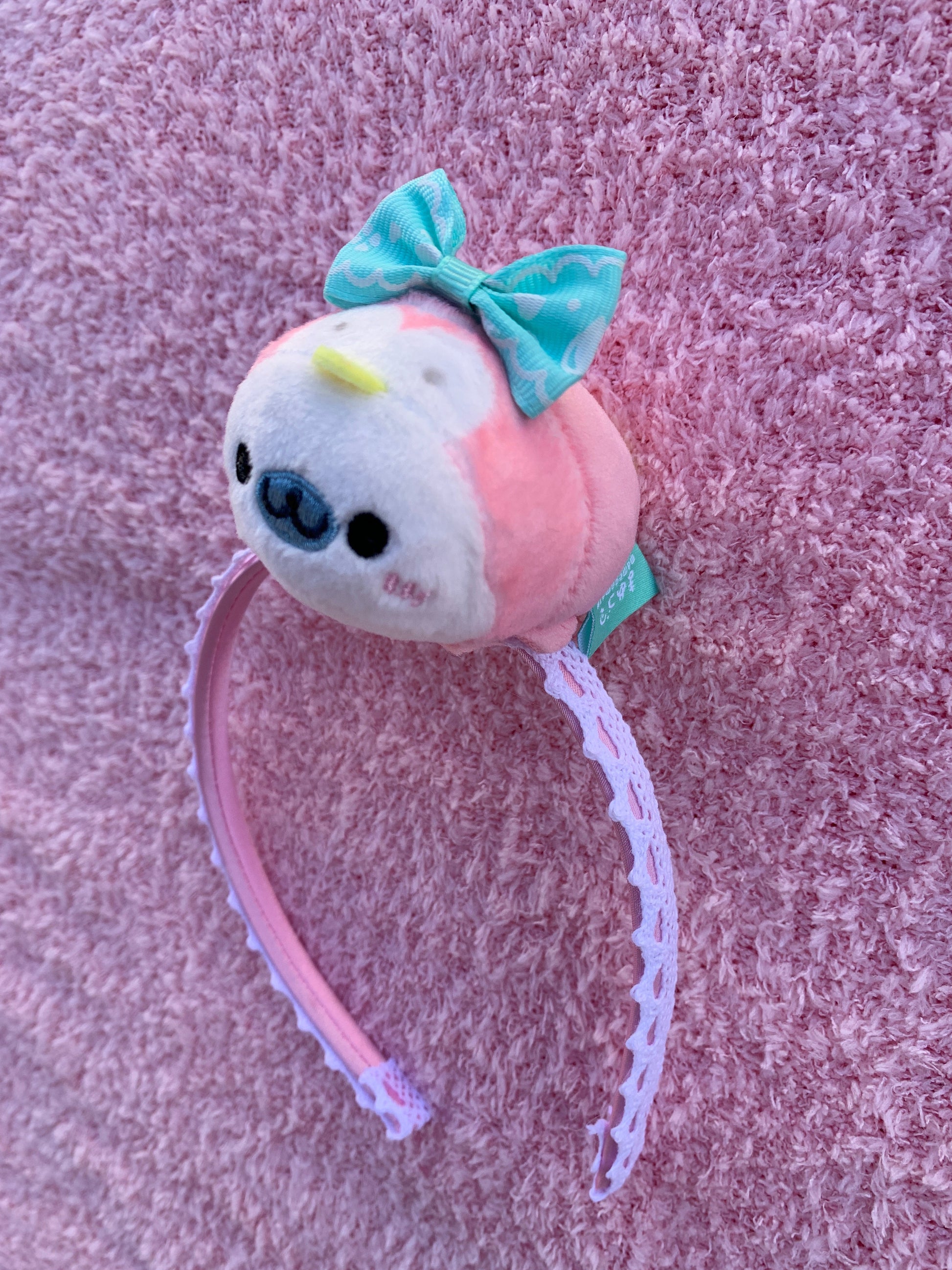 Mamegoma plush on a headband! Mamegoma is dressed up as a penguin. Lots of cute deco has been added!
