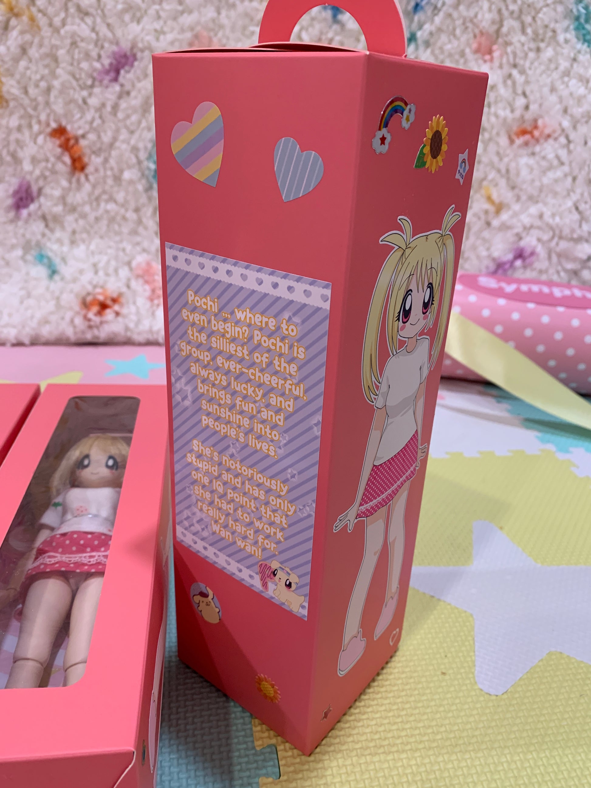 Pochi is the silliest of the group, ever-cheerful, always lucky, and brings fun and sunshine into people's lives. She's notoriously stupid and has only one IQ point that she had to work really hard for. Wan wan!