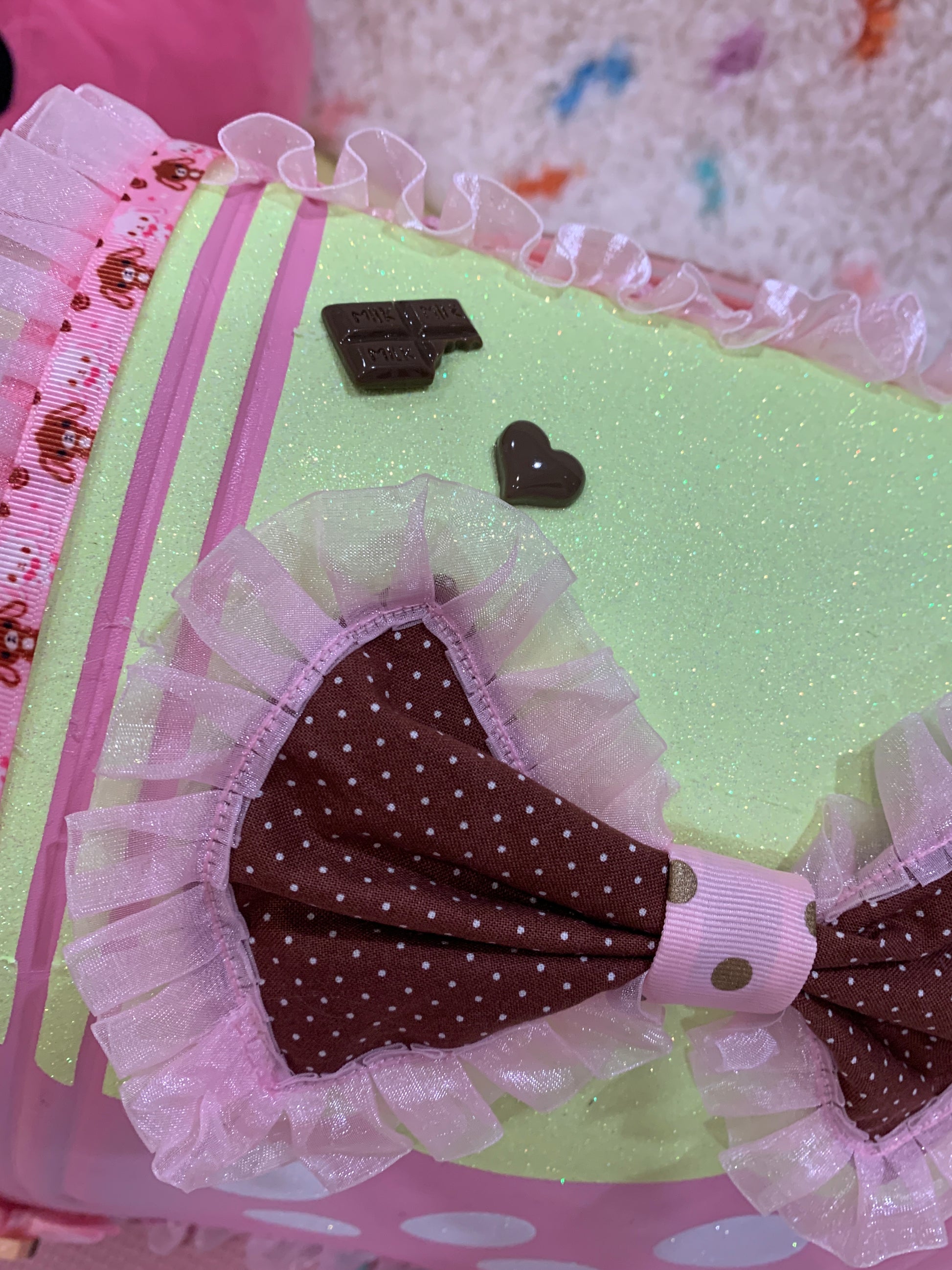 The strawberry parts are made with glittery htv, and may have some minor flaws ><
