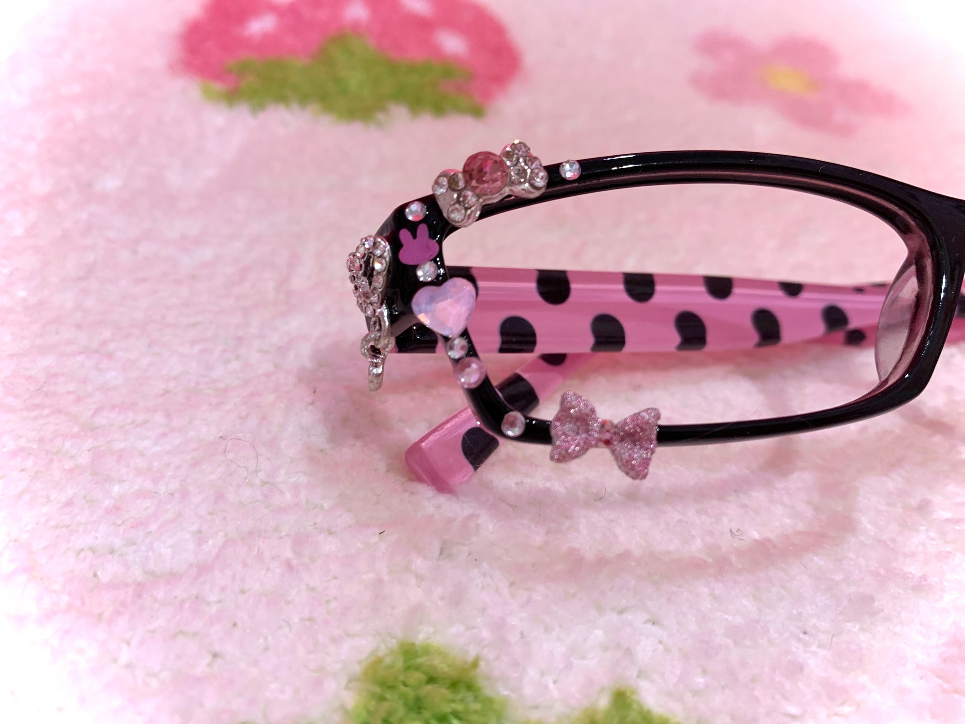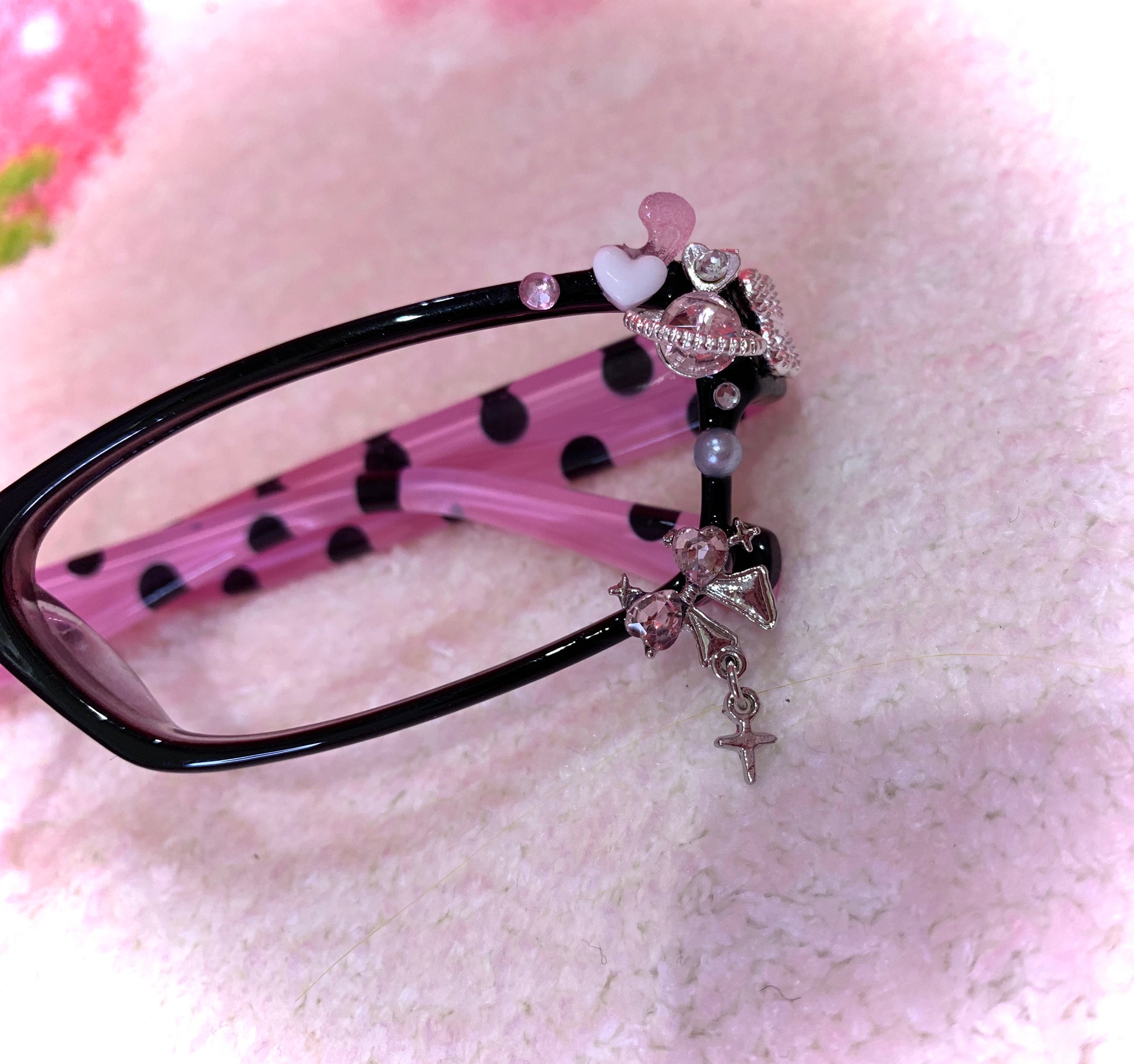 Lensless, black glasses! Charms secured by UV resin. One of the rabbit ears on the rabbit ear charm on the right side broke, so the price is lower. (piece will be included if you wanna glue it on)
