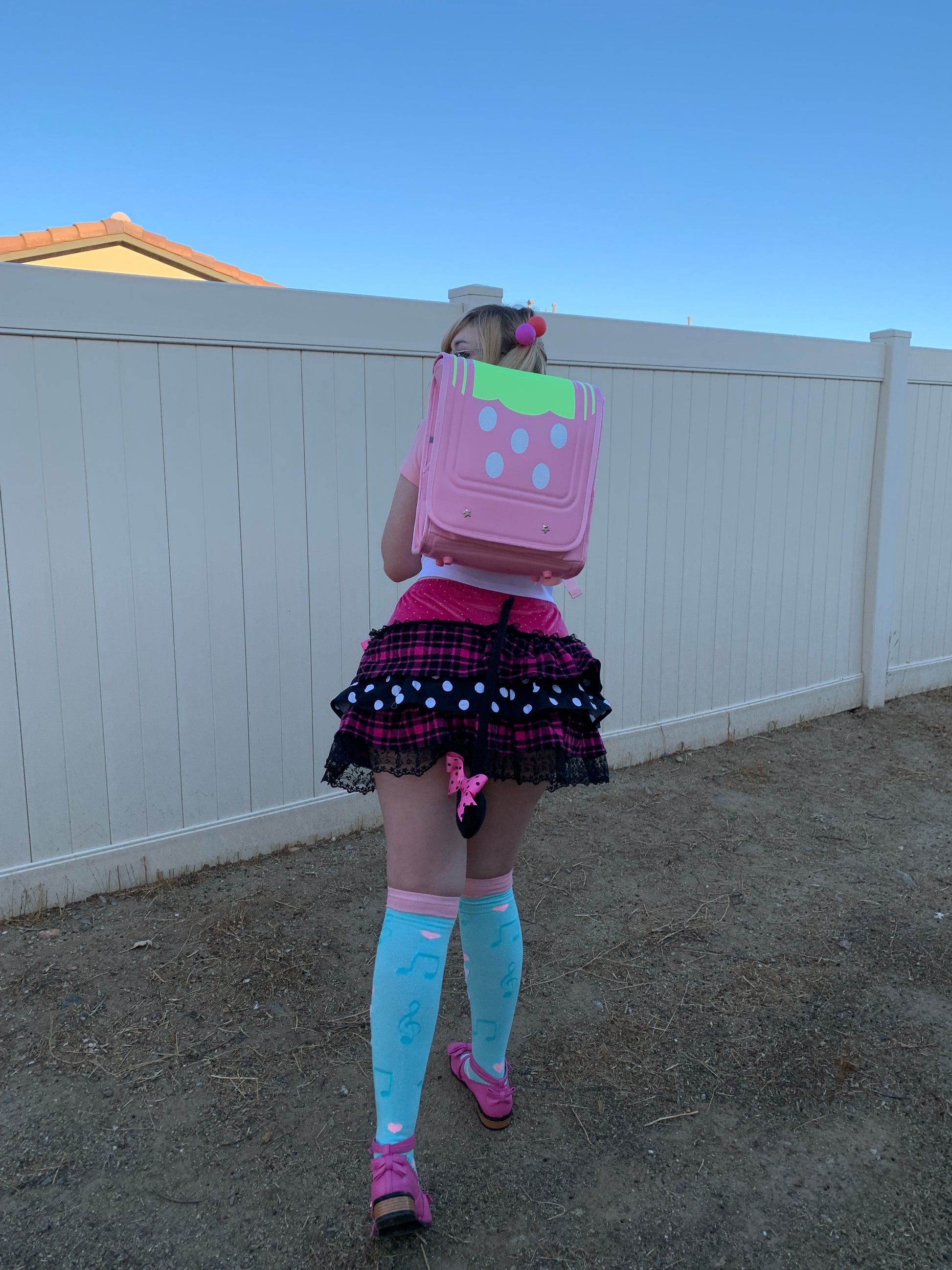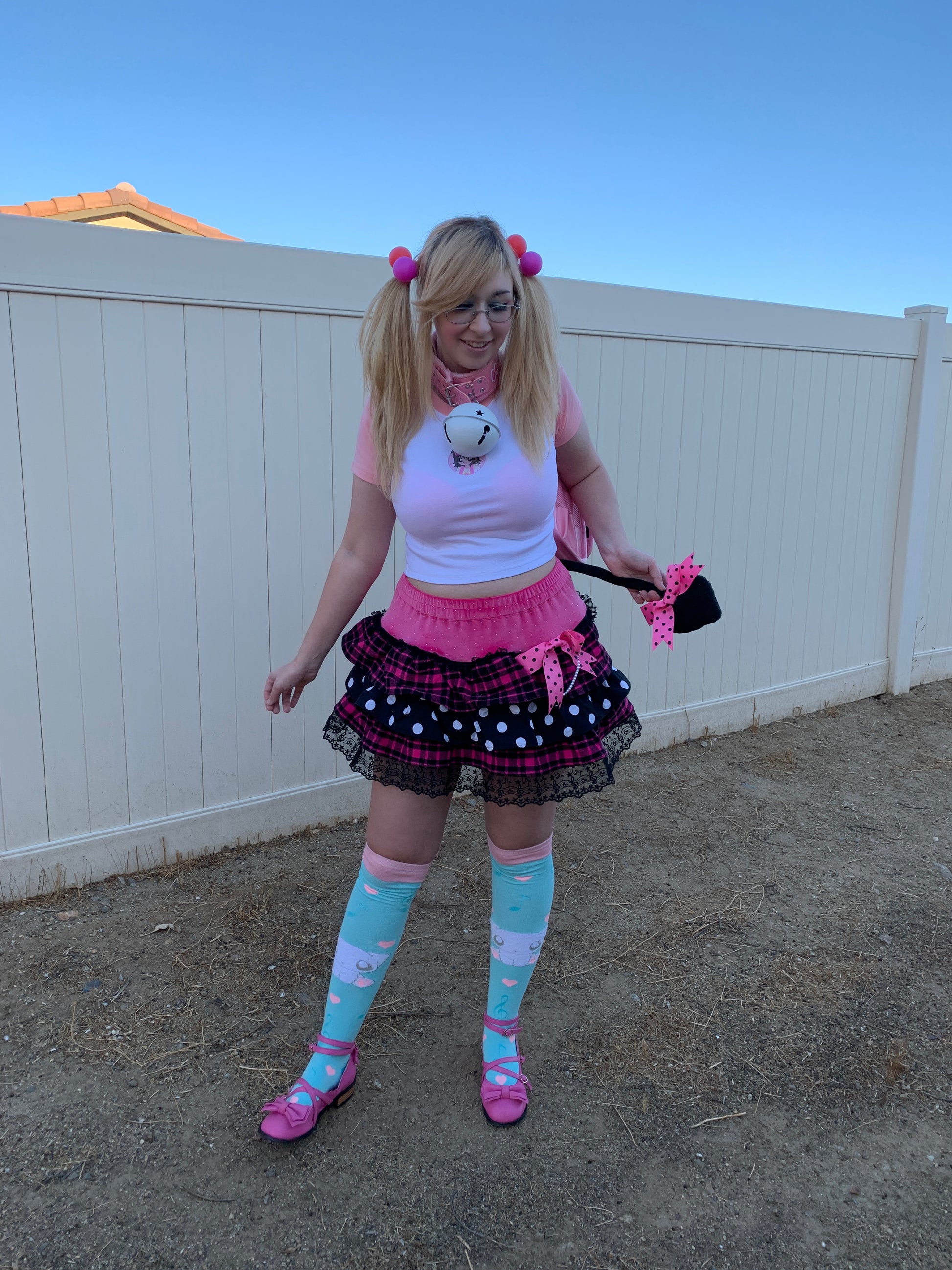 Tiered skirt made from Juicy Couture velour fabric, as well as cotton and flannel! The black lace at the bottom features music notes and motifs! Includes a detachable tail and a detachable pearl bow brooch. Fits size US L/XL!