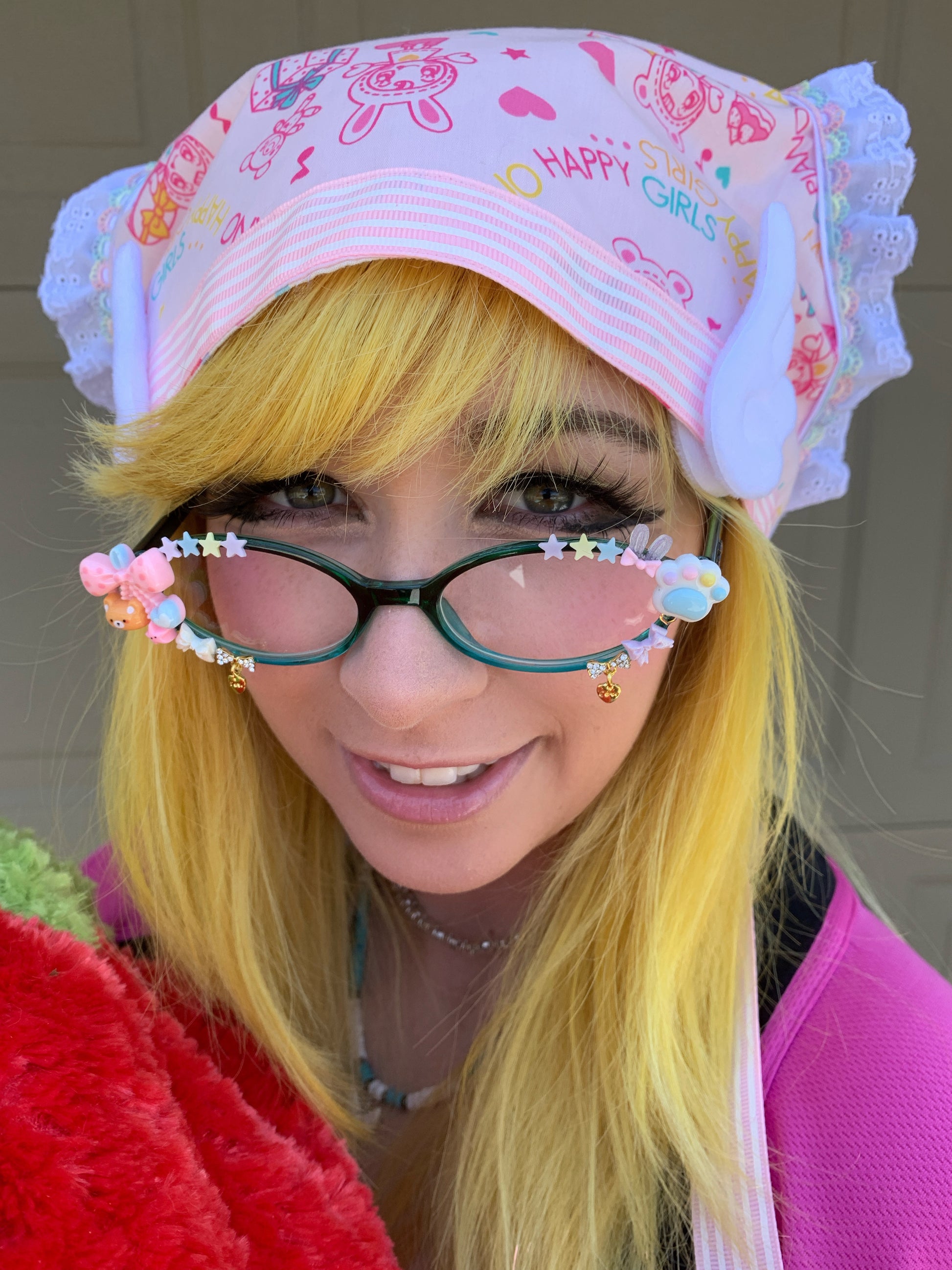 teal deco glasses with pastel charms! Charms secured by UV resin.
