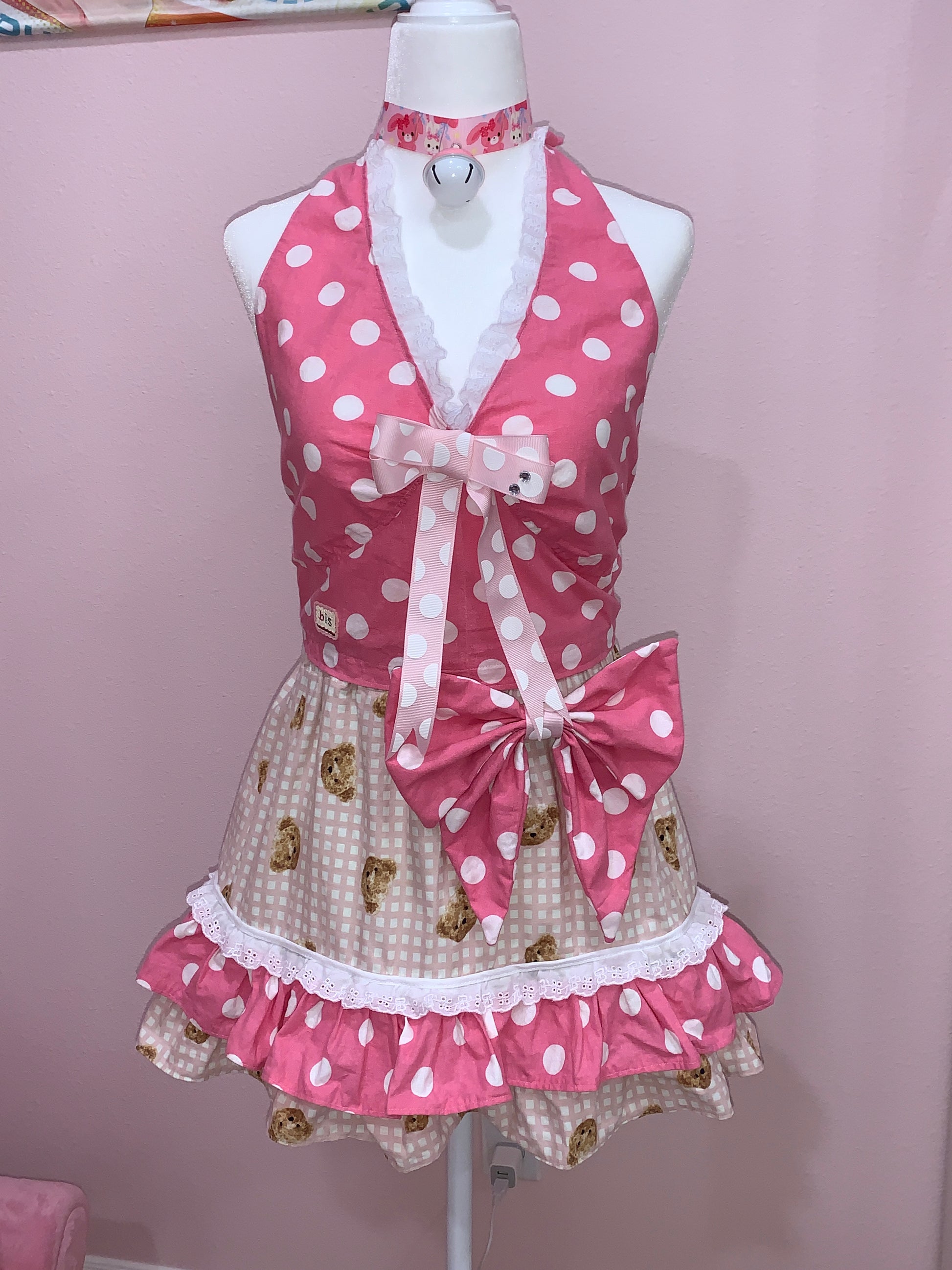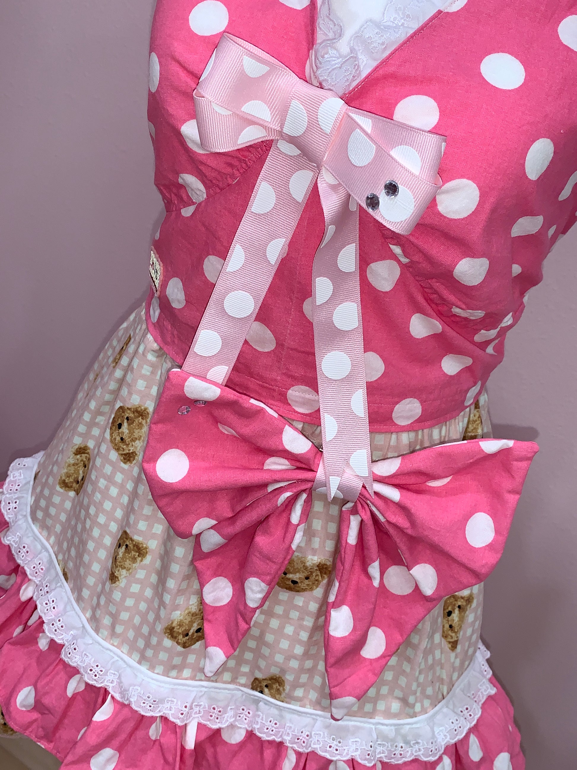 Size US medium! Made of cotton! Cotton is nice, natural and breathable, but it wrinkles easily. I suggest ironing or steaming after washing to get the wrinkles out ^_^ or lay flat to dry and smooth out wrinkles to prevent wrinkles in the first place~ I don’t recommend putting it in the dryer as it will most likely shrink a bit…! Please remove all detachable items before washing!💗